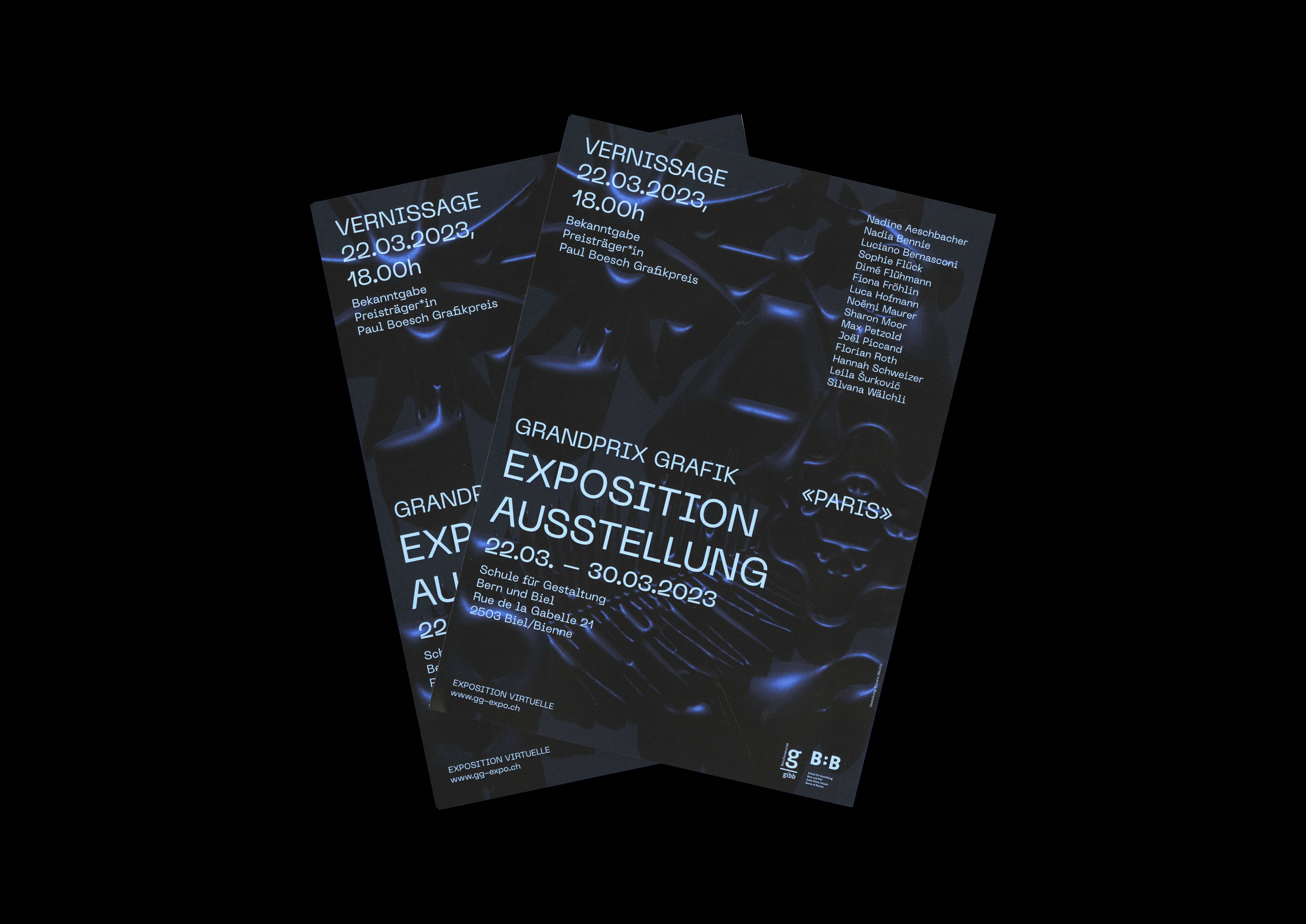 Für die Ausstellung des Grand Prix Grafik 2023 der Schule für Gestaltung in Biel, habe ich das Ausstellungsplakat und den Flyer gestaltet. Die verschiedenen Formen des Motivs sind aus den Arbeiten der Schüler:innen im Rahmen des Grand Prix Grafik entnommen.
